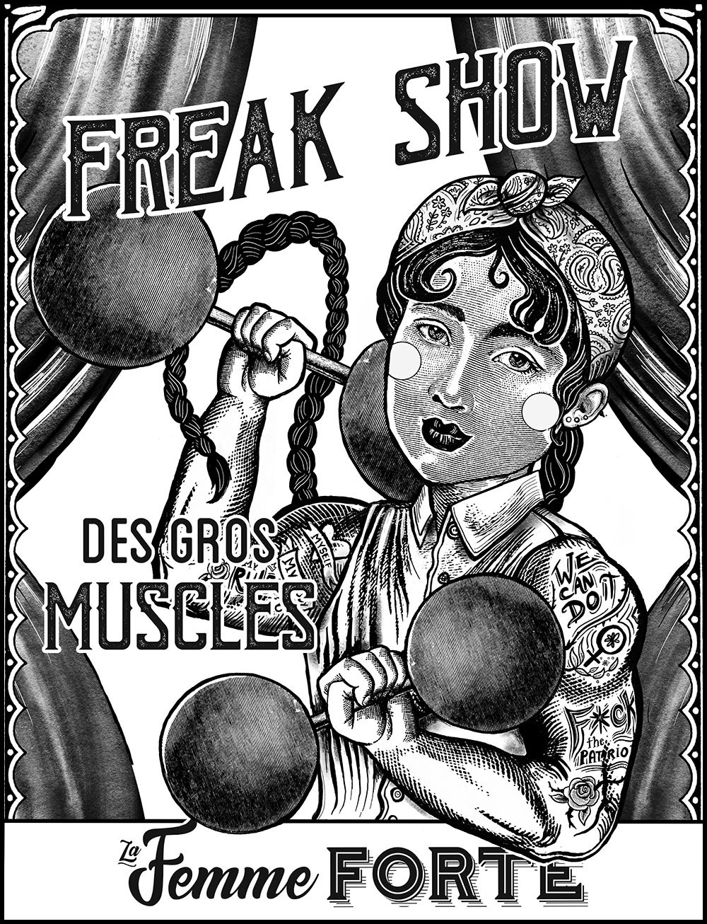 In 2019, I was invited by Under Pressure, a Montreal Based Graffiti Festival to create 4 wheat paste murals. I decided to illustrate a feminist freak show.